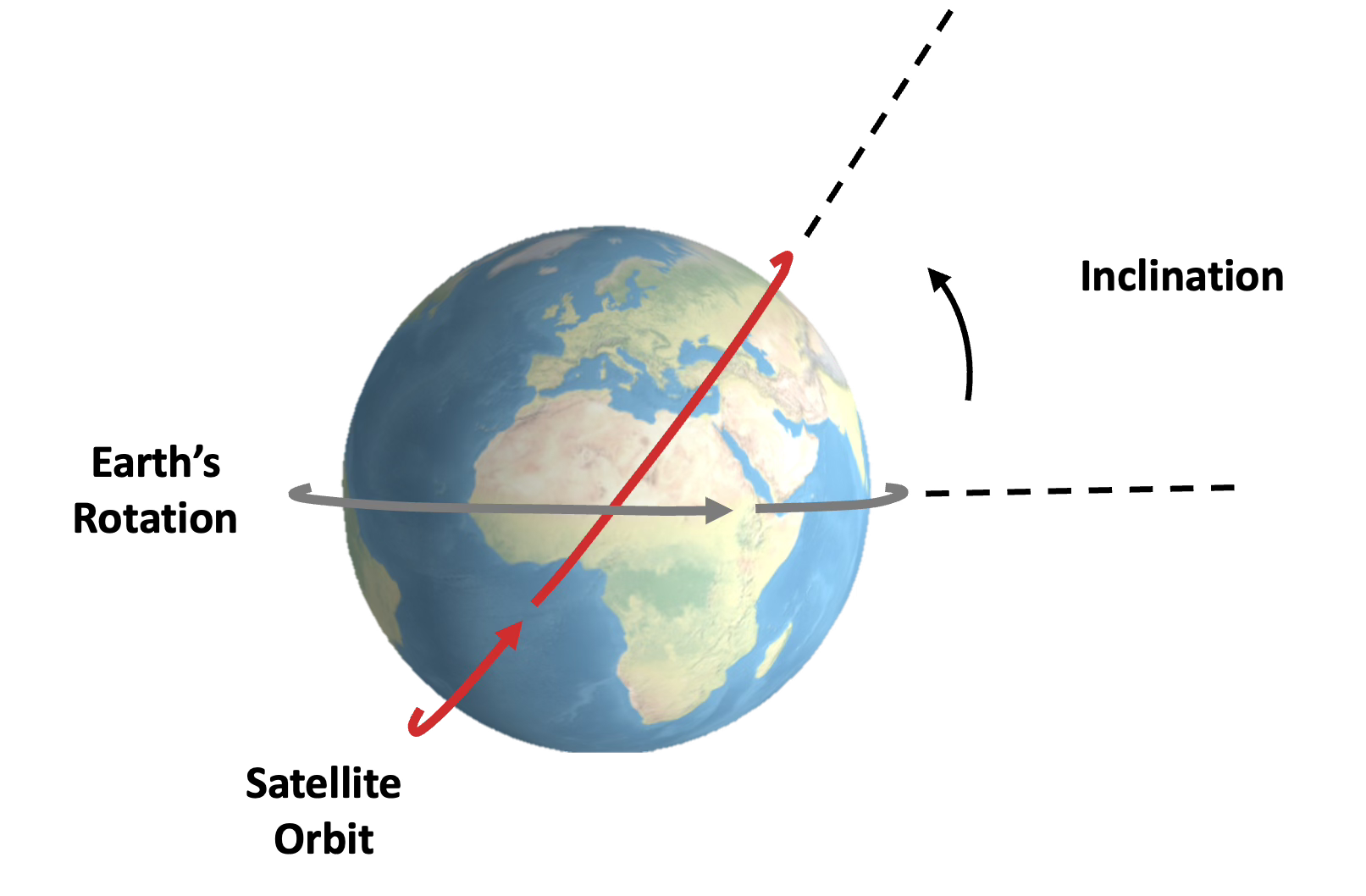 To expand on GEO, we can add inclination by tilting the orbit at an angle relative to the equator. Few satellites, except for those in GEO, orbit at 0° (equatorial) inclination. Most have some inclination to modify their ground track.