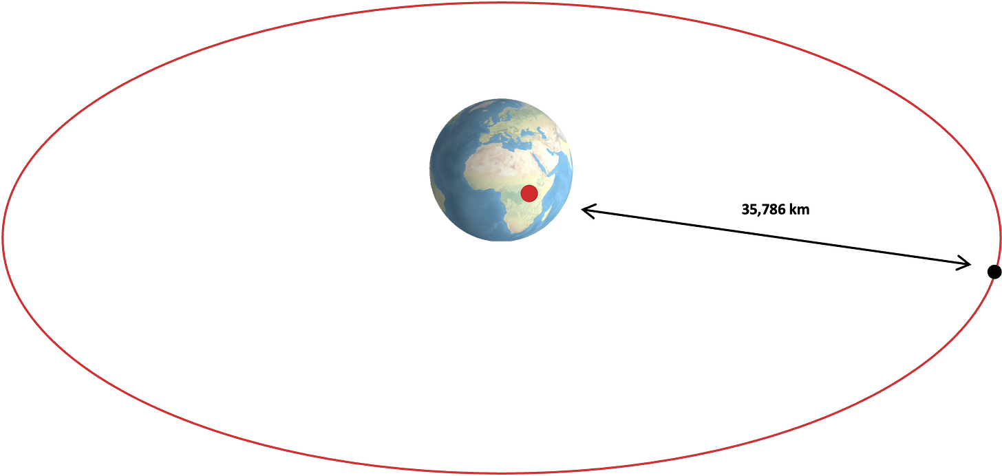 And the equatorial GEO belt has limited slots. Only so many satellites can park at useful longitudes before they start interfering with each other, making an orbital slot at this location a valued asset.